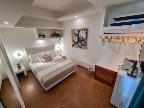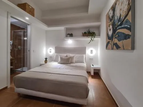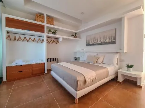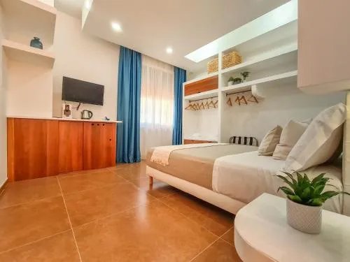 Camera matrimoniale con ingresso indipendente dotata di aria condizionata, bagno privato con doccia a filo pavimento e terrazza con vista mare. Numero di letti disponibili: 1.