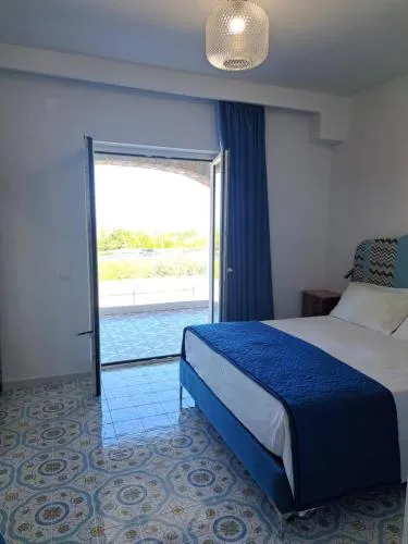 Camera matrimoniale dotata di aria condizionata, pareti insonorizzate, terrazza con vista sul mare e bagno privato con doccia a filo pavimento. L’alloggio dispone di 1 letto.