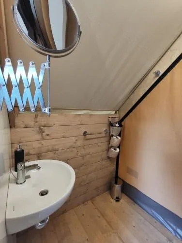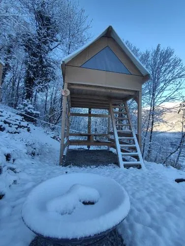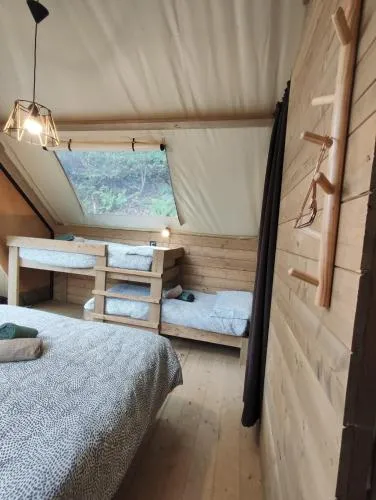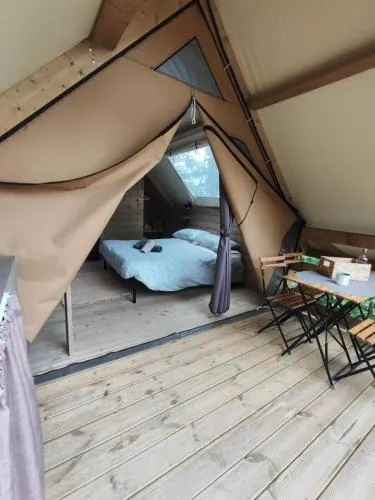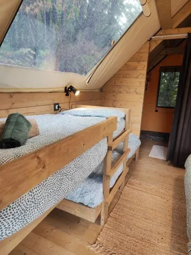 Providing free toiletries and bathrobes, this tent includes a private bathroom with a walk-in shower and a hairdryer. Guests can make meals in the kitchenette that is equipped with a stovetop, a refrigerator, kitchenware and an electric kettle. This wheelchair accessible tent features a hot tub, a seating area and a roll-in shower. The unit offers 2 beds.