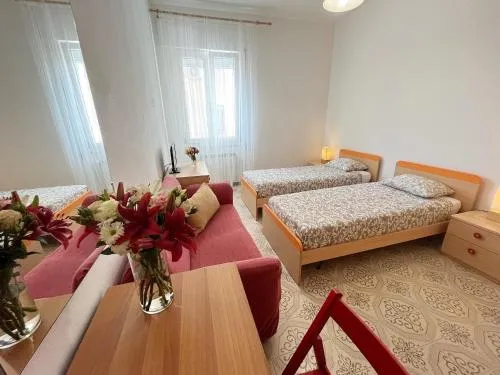 The quadruple room offers a dining area, a wardrobe, as well as a private bathroom boasting a shower and a bidet. The air-conditioned quadruple room features a flat-screen TV with streaming services, a washing machine, a tea and coffee maker, a seating area as well as an inner courtyard view. The unit has 3 beds.