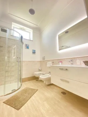 Casa vacanze climatizzata con ingresso indipendente, 1 soggiorno, 3 camere da letto separate e 2 bagni con doccia e bidet. La cucina è completamente attrezzata e munita di utensili, piano cottura, frigorifero e lavastoviglie. La sistemazione dispone di lavatrice, terrazza, vino/champagne e vista giardino. L’alloggio presenta 4 letti.