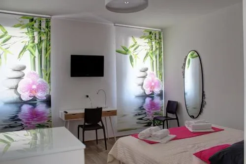 Bollitore tè/macchina caffè, Doccia, TV, Aria condizionata, Asciugacapelli, Frigorifero, Scrivania, Zona soggiorno, Prodotti da bagno in omaggio, WC, Forno a microonde, Lavastoviglie, Bagno privato, Letti lunghi (oltre 2 metri), Riscaldamento, Cucina, Vasca o doccia, Disponibilità di camere comunicanti, TV a schermo piatto, Ingresso indipendente, Insonorizzazione, Pavimento in marmo o in piastrelle, Vista, Zona pranzo, Bollitore elettrico, Utensili da cucina, Zanzariera, Armadio o guardaroba, Forno, Piano cottura, Tostapane, Bidet, Prodotti per le pulizie, Bagno aggiuntivo, Macchina da caffè, Asciugamani, Tavolo da pranzo, Stand appendiabiti, Stendibiancheria, Carta igienica, Sedia per doccia, Cioccolatini o biscotti, Pattumiere, Lettini e culle per bambini, Shampoo, Bagnoschiuma, Cuffia da doccia, Presa elettrica vicino al letto, Cuscino non di piume, Cuscino ipoallergenico, Estintori, Accesso con chiavi, Aria condizionata indipendente in ogni alloggio, Gel igienizzante per le mani
