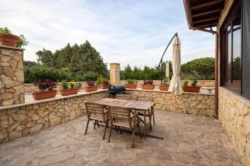 Featuring a private entrance, this air-conditioned holiday home consists of 2 living rooms, 3 separate bedrooms and 2 bathrooms with a shower and a bidet. Guests will find a stovetop, a refrigerator, kitchenware and an oven in the well-fitted kitchen. The holiday home also offers a barbecue. The spacious holiday home provides a washing machine, a tea and coffee maker, a seating area, a flat-screen TV with streaming services, as well as garden views. The unit offers 5 beds.