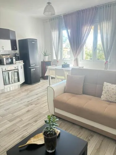Boasting a private entrance, this air-conditioned holiday home features 1 living room, 2 separate bedrooms and 2 bathrooms with a shower and a bidet. Guests will find a stovetop, a refrigerator, a dishwasher and kitchenware in the well-fitted kitchen. The holiday home also comes with a barbecue. Featuring a terrace with garden views, this holiday home also features a washing machine and a flat-screen TV. The unit has 3 beds.