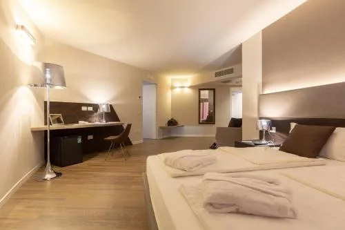 | Bambini con letti supplementari | Sono ammessi bambini di tutte le età. I bambini fino a 1 anno incluso possono soggiornare al costo di € 15 a persona a notte in una culla (se disponibile). I bambini fino a 2 anni inclusi possono soggiornare gratis in uno dei letti già presenti. Non hai aggiunto letti supplementari. Qualsiasi tipo di letto supplementare o culla è disponibile su richiesta e previa conferma da parte della struttura. I supplementi non sono inclusi nell’importo totale e devono essere pagati separatamente durante il soggiorno. |