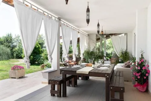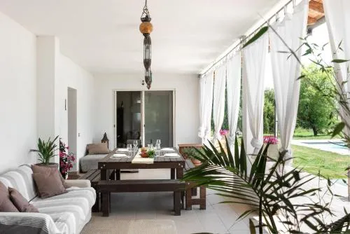 Bollitore tè/macchina caffè, Minibar, Doccia, Vasca, TV, Aria condizionata, Asciugacapelli, Ferro da stiro, Frigorifero, Ferro e asse da stiro, Zona soggiorno, Ventilatore, WC, Forno a microonde, Lavastoviglie, Lavatrice, Patio, Bagno privato, Riscaldamento, Cucina, Vasca o doccia, Camino, TV a schermo piatto, Ingresso indipendente, Divano, Pavimento in marmo o in piastrelle, Vista, Zona pranzo, Bollitore elettrico, Utensili da cucina, Zanzariera, Piscina privata a uso esclusivo, Asciugatrice, Armadio o guardaroba, Forno, Piano cottura, Tostapane, Barbecue, Bidet, Vista giardino, Vista piscina, Macchina da caffè, Terrazza, Asciugamani, Biancheria per la casa, Tavolo da pranzo, Seggiolone, Arredamento da esterno, Zona pranzo all'aperto, Intera unità situata al piano terra, Intera unità accessibile ai disabili, Indipendente, Stand appendiabiti, Stendibiancheria, Carta igienica, Piscina con vista, Teli, Bottiglia d'acqua, Pattumiere, Calici da vino, Lettini e culle per bambini, Shampoo, Bagnoschiuma, Presa elettrica vicino al letto, Cuscino non di piume, Cuscino ipoallergenico, Vista su strada tranquilla, Estintori, Accesso con chiavi, Rilevatore di monossido di carbonio, Aria condizionata indipendente in ogni alloggio, Gel igienizzante per le mani