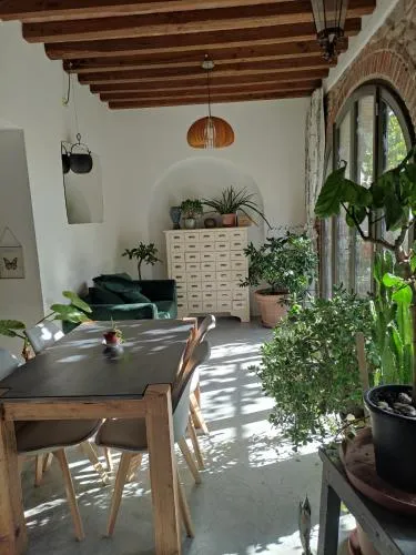 Featuring a private entrance, this air-conditioned holiday home is comprised of 1 living room, 2 separate bedrooms and 2 bathrooms with a shower and a hairdryer. The holiday home's kitchen, which features a refrigerator and kitchenware, is available for cooking and storing food. The spacious holiday home offers a coffee machine, a seating area, a dining area as well as a terrace with garden views. The unit offers 4 beds.