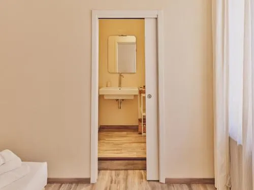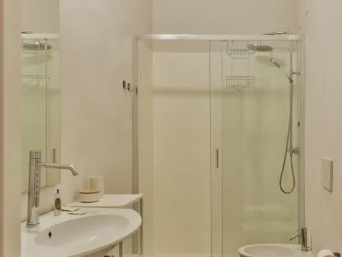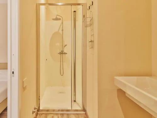 Camera matrimoniale dotata di bagno privato con doccia a filo pavimento, bidet, asciugacapelli e set di cortesia. La sistemazione dispone di aria condizionata, TV a schermo piatto con servizio di streaming, ingresso privato, armadio, parquet e vista su una strada tranquilla. L’unità offre 1 letto.