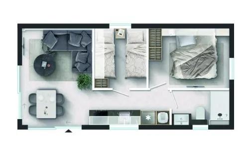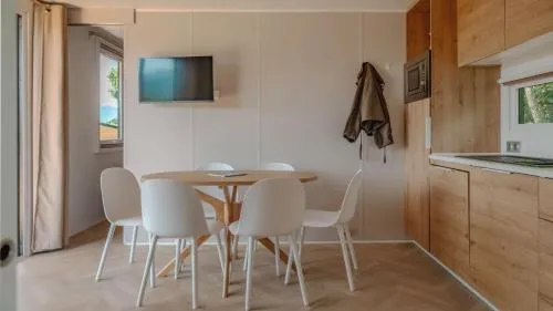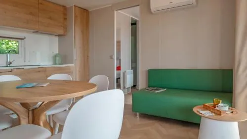 Boasting a private entrance, this air-conditioned mobile home features a kitchenette, 2 bedrooms and 2 bathrooms with a shower and a bidet. Meals can be prepared in the well-fitted kitchenette, which has a stovetop, a refrigerator, a dishwasher and kitchenware. This mobile home comes with a dining area, a flat-screen TV with cable channels a seating area and a terrace. The unit has 2 beds.