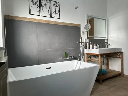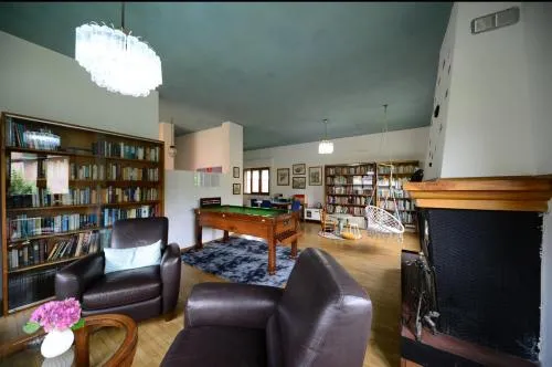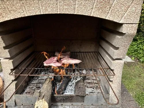 The private pool and fireplace are the standout features of this holiday home. The spacious holiday home provides a washing machine, a private entrance, as well as a shared bathroom featuring a bath and a shower. Guests will find a stovetop, a refrigerator, a dishwasher and kitchenware in the fully equipped kitchen. The holiday home also offers a barbecue. The holiday home features parquet floors, a seating area with a flat-screen TV, a coffee machine, a dining area as well as garden views. The unit offers 3 beds.
