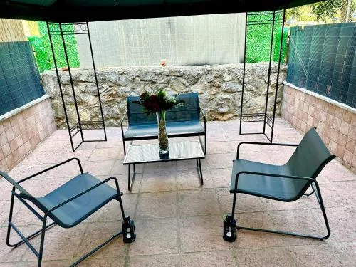 Doccia, TV, Asciugacapelli, Angolo cottura, Frigorifero, Zona soggiorno, Ventilatore, WC, Bagno privato, Riscaldamento, Cucina, TV a schermo piatto, Ingresso indipendente, Divano, Vista, Sveglia telefonica, Bollitore elettrico, Utensili da cucina, Zanzariera, Armadio o guardaroba, Forno, Piano cottura, Vista giardino, Prodotti per le pulizie, Macchina da caffè, Asciugamani, Biancheria per la casa, Tavolo da pranzo, Arredamento da esterno, Intera unità accessibile ai disabili, Stendibiancheria, Carta igienica, Divano letto, Bottiglia d'acqua, Calici da vino, Shampoo, Balsamo, Bagnoschiuma, Presa elettrica vicino al letto, Adattatore, Cuscino non di piume, Allarme antifumo, Estintori, Rilevatore di monossido di carbonio