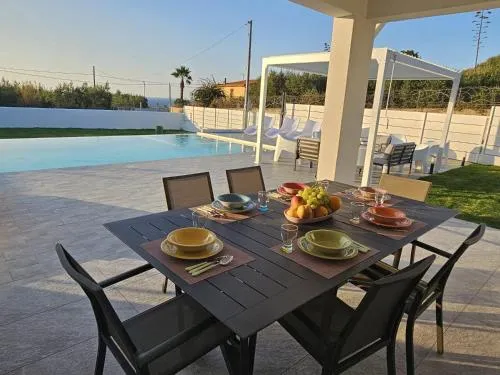 Bollitore tè/macchina caffè, Doccia, TV, Aria condizionata, Asciugacapelli, Ferro da stiro, Angolo cottura, Balcone, Accappatoio, Frigorifero, Scrivania, Ferro e asse da stiro, Zona soggiorno, WC, Forno a microonde, Lavastoviglie, Lavatrice, Patio, Bagno privato, Riscaldamento, Cucina, Vasca o doccia, TV a schermo piatto, Ingresso indipendente, Divano, Pavimento in marmo o in piastrelle, Vista, Zona pranzo, Bollitore elettrico, Utensili da cucina, Piscina privata a uso esclusivo, Forno, Piano cottura, Tostapane, Barbecue, Vista mare, Vista giardino, Vista piscina, Macchina da caffè, Terrazza, Asciugamani, Biancheria per la casa, Tavolo da pranzo, Seggiolone, Arredamento da esterno, Zona pranzo all'aperto, Intera unità situata al piano terra, Indipendente, Stand appendiabiti, Stendibiancheria, Carta igienica, Divano letto, Piscina a sfioro, Piscina con vista, Piscina di acqua salata, Vasca immersione ad acqua fredda, Teli, Zona acqua bassa, Bottiglia d'acqua, Pattumiere, Calici da vino, Lettini e culle per bambini, Presa elettrica vicino al letto, Vista cortile interno, Accesso con chiavi, Aria condizionata indipendente in ogni alloggio