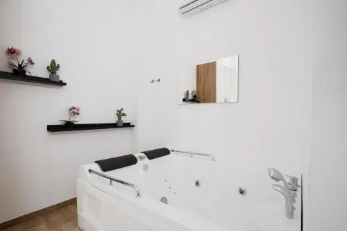 The hot tub and spa bath are the standout features of this double room. The spacious double room features air conditioning, a tea and coffee maker, as well as a private bathroom boasting a shower and a bidet. The unit has 1 bed.