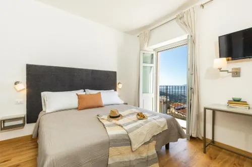 Camera matrimoniale dotata di aria condizionata, pareti insonorizzate, balcone affacciato sul mare e bagno privato con doccia a filo pavimento. L’alloggio dispone di 1 letto.