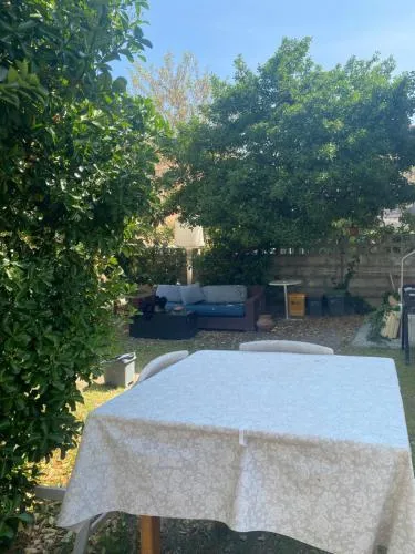 Featuring a private entrance, this air-conditioned holiday home comprises 1 living room, 1 separate bedroom and 1 bathroom with a shower and a bidet. Guests will find a stovetop, a refrigerator, kitchenware and an oven in the fully equipped kitchen. The holiday home also provides guests with a barbecue. The holiday home provides a washing machine, a coffee machine, a wardrobe, a flat-screen TV with streaming services, as well as garden views. The unit offers 4 beds.
