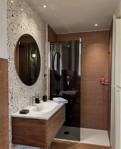 Spaziosa camera matrimoniale climatizzata con ingresso indipendente, balcone con vista sulla città e bagno privato con doccia a filo pavimento. L'alloggio dispone di 1 letto.