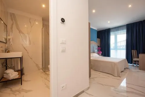 Doccia, Cassaforte, TV, Aria condizionata, Asciugacapelli, Frigorifero, Scrivania, Prodotti da bagno in omaggio, WC, Bagno privato, Riscaldamento, Canali satellitari, Vasca o doccia, TV a schermo piatto, Insonorizzazione, Pavimento in marmo o in piastrelle, Armadio o guardaroba, Bidet, Soluzioni anallergiche, Macchina da caffè, Asciugamani, Stand appendiabiti, Letto pieghevole, Carta igienica, Doccia a filo pavimento, Campanello di emergenza nel bagno, Sedia per doccia, Bottiglia d'acqua, Pattumiere, Lettini e culle per bambini, Shampoo, Bagnoschiuma, Cuffia da doccia, Cuscino ipoallergenico, Alloggio accessibile tramite ascensore, Vista su strada tranquilla, Armadietti, Estintori, Accesso con chiavi magnetiche, Aria condizionata indipendente in ogni alloggio, Gel igienizzante per le mani