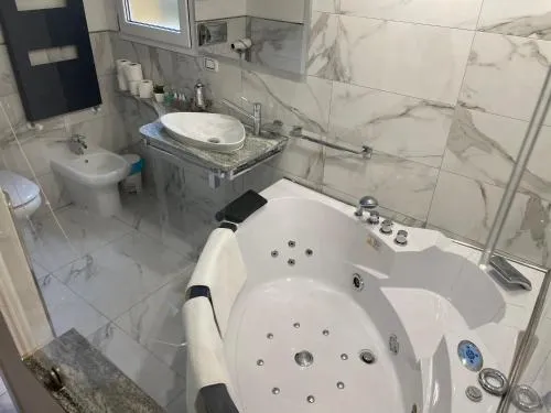 Bollitore tè/macchina caffè, Doccia, TV, Aria condizionata, Asciugacapelli, Ferro da stiro, Angolo cottura, Frigorifero, Scrivania, Ferro e asse da stiro, Zona soggiorno, Prodotti da bagno in omaggio, Ventilatore, WC, Forno a microonde, Lavatrice, Patio, Riscaldamento, Cabina armadio, Cucina, Vasca o doccia, TV a schermo piatto, Ingresso indipendente, Divano, Insonorizzazione, Pavimento in marmo o in piastrelle, Zona pranzo, Bollitore elettrico, Utensili da cucina, Armadio o guardaroba, Piano cottura, Bidet, Vista giardino, Soluzioni anallergiche, Prodotti per le pulizie, Macchina da caffè, Asciugamani, Biancheria per la casa, Tavolo da pranzo, Arredamento da esterno, Zona pranzo all'aperto, Intera unità situata al piano terra, Indipendente, Appartamento privato in edificio, Stand appendiabiti, Stendibiancheria, Carta igienica, Divano letto, Bottiglia d'acqua, Pattumiere, Calici da vino, Shampoo, Bagnoschiuma, Presa elettrica vicino al letto, Adattatore, Cuscino non di piume, Cuscino ipoallergenico, Accesso con chiavi, Purificatori d'aria, Aria condizionata indipendente in ogni alloggio, Gel igienizzante per le mani
