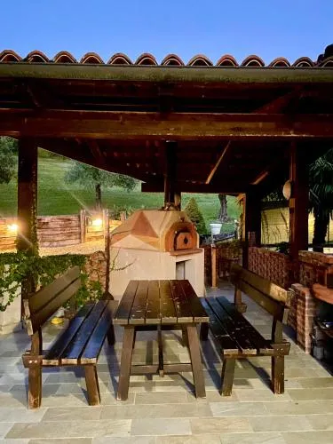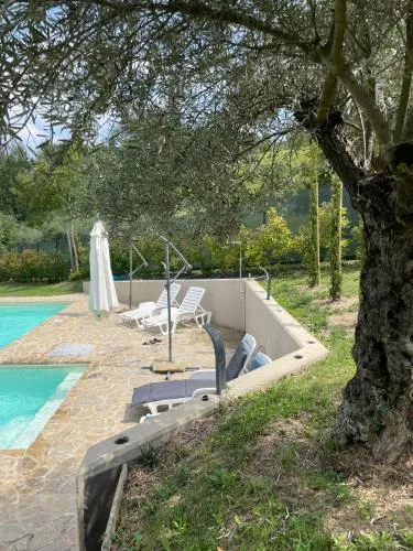 Questa casa vacanze dotata di piscina con vista e camino vi offrirà un’esperienza speciale. È climatizzata e composta da ingresso indipendente, 1 soggiorno, 3 camere da letto separate e 3 bagni con bidet e doccia a filo pavimento. Troverete una cucina completamente attrezzata con piano cottura, frigorifero, lavastoviglie e utensili. Potrete usufruire di un barbecue. Questa spaziosa casa vacanze offre anche una lavatrice, un set per la preparazione di tè e caffè, un’area salotto, una TV via cavo a schermo piatto e la vista sul giardino. L’alloggio presenta 5 letti.