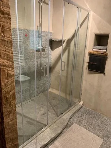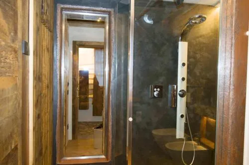 Camera matrimoniale con vasca idromassaggio. La spaziosa camera matrimoniale dispone di ingresso privato, pareti insonorizzate e bagno privato con cabina doccia e vasca. La camera matrimoniale dispone di bollitore elettrico, divano, pavimenti in parquet, TV a schermo piatto con canali via cavo e vista sulle montagne. L’alloggio presenta 2 letti.