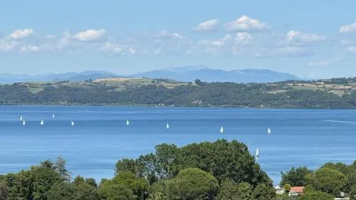 The private pool and fireplace are the standout features of this holiday home. Featuring a private entrance, this air-conditioned holiday home is comprised of 1 living room, 2 separate bedrooms and 1 bathroom with a shower and a bidet. Guests will find a stovetop, a refrigerator, a dishwasher and kitchenware in the kitchen. The holiday home also has a barbecue. The holiday home offers a flat-screen TV with streaming services, a washing machine, soundproof walls, a tea and coffee maker as well as lake views. The unit offers 3 beds.