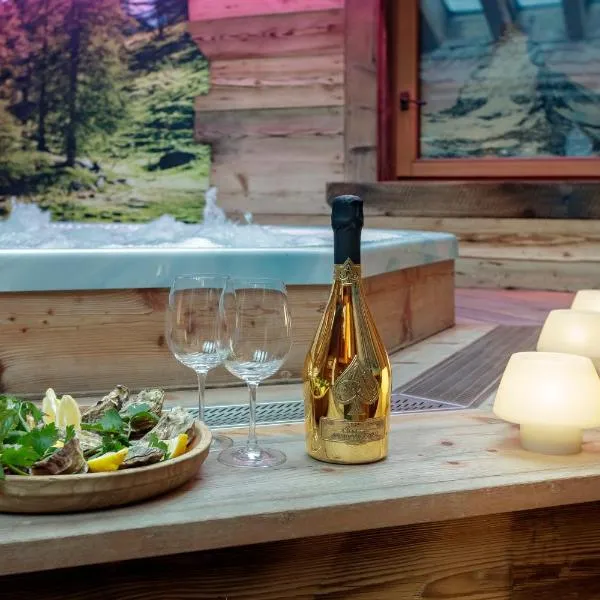 Featuring a private entrance, this chalet also comprises 1 bedroom, a seating area and 1 bathroom with a shower and a bidet. Meals can be prepared in the kitchen, which comes with a stovetop, a refrigerator, a dishwasher and kitchenware. The chalet provides soundproof walls, a tea and coffee maker, a dining area, a flat-screen TV with streaming services, as well as mountain views. The unit offers 2 beds.