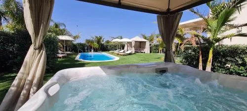 Minibar, Doccia, TV, Aria condizionata, Asciugacapelli, Vasca idromassaggio, Ferro da stiro, Balcone, Accappatoio, Frigorifero, Scrivania, Ferro e asse da stiro, Zona soggiorno, Prodotti da bagno in omaggio, WC, Forno a microonde, Lavastoviglie, Lavatrice, Bagno privato, Letti lunghi (oltre 2 metri), Riscaldamento, Pantofole, Cucina, Vasca o doccia, TV a schermo piatto, Ingresso indipendente, Divano, Insonorizzazione, Pavimento in marmo o in piastrelle, Vista, Zona pranzo, Utensili da cucina, Zanzariera, Piscina privata a uso esclusivo, Armadio o guardaroba, Forno, Piano cottura, Barbecue, Bidet, Vista mare, Vista giardino, Vista piscina, Vista montagna, Vista luogo di interesse, Soluzioni anallergiche, Prodotti per le pulizie, Macchina da caffè, Asciugamani, Biancheria per la casa, Tavolo da pranzo, Arredamento da esterno, Zona pranzo all'aperto, Intera unità situata al piano terra, Indipendente, Stendibiancheria, Carta igienica, Cancelletti di sicurezza per bambini, Divano letto, Piscina di acqua salata, Teli, Zona acqua bassa, Vino/champagne, Bottiglia d'acqua, Pattumiere, Calici da vino, Lettini e culle per bambini, Spazzolino da denti, Shampoo, Balsamo, Bagnoschiuma, Cuffia da doccia, Presa elettrica vicino al letto, Adattatore, Cuscino di piume, Cuscino non di piume, Hotspot portatile, Smartphone, Allarme antifumo, Estintori, Accesso con chiavi, Aria condizionata indipendente in ogni alloggio