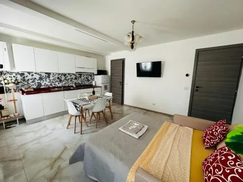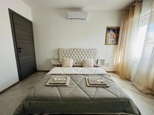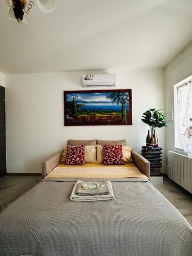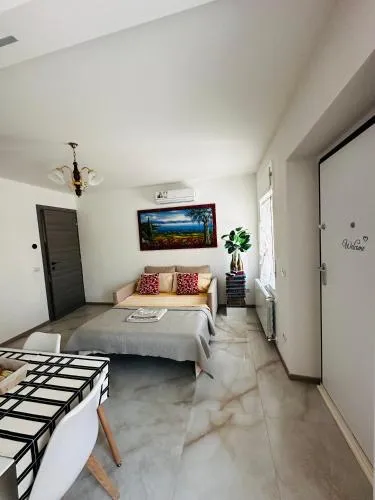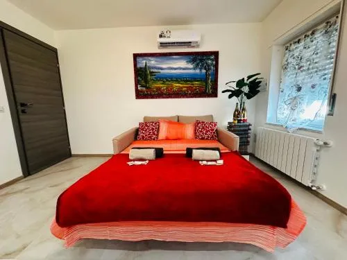 Featuring a private entrance, this air-conditioned holiday home is comprised of 1 living room, 1 separate bedroom and 2 bathrooms with a shower and a bidet. The well-fitted kitchen features a stovetop, a refrigerator, kitchenware and a microwave. Boasting a terrace with garden views, this holiday home also offers a washing machine and a flat-screen TV with cable channels. The unit offers 2 beds.