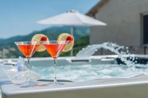 This villa boasts a private pool, hot tub and fireplace. Featuring a private entrance, this air-conditioned villa consists of 2 living rooms, 5 separate bedrooms and 5 bathrooms with a shower and a bidet. Guests will find a stovetop, a refrigerator, a dishwasher and kitchenware in the well-fitted kitchen. The villa also offers a barbecue. The spacious villa provides a flat-screen TV with satellite channels, a washing machine, a tea and coffee maker, a seating area as well as garden views. The unit offers 8 beds.