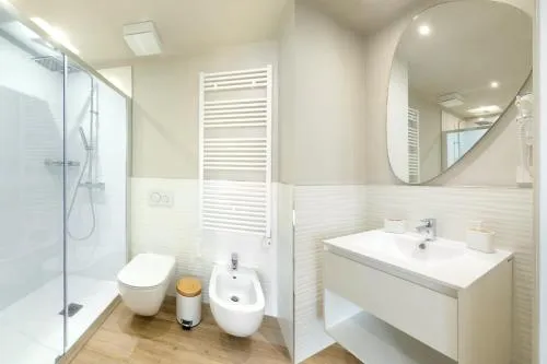 Bollitore tè/macchina caffè, Doccia, Vasca, TV, Aria condizionata, Asciugacapelli, Vasca idromassaggio, Accappatoio, Vasca da bagno con idromassaggio, Frigorifero, Scrivania, Zona soggiorno, Prodotti da bagno in omaggio, WC, Forno a microonde, Lavastoviglie, Bagno privato, Riscaldamento, Pantofole, Canali satellitari, Vasca o doccia, TV a schermo piatto, Divano, Insonorizzazione, Pavimento in marmo o in piastrelle, Vista, Zona pranzo, Bollitore elettrico, Utensili da cucina, Zanzariera, Asciugamani/lenzuola disponibili a pagamento, Armadio o guardaroba, Bidet, Vista giardino, Macchina da caffè, Asciugamani, Biancheria per la casa, Tavolo da pranzo, Stendibiancheria, Carta igienica, Divano letto, Bottiglia d'acqua, Pattumiere, Calici da vino, Lettini e culle per bambini, Shampoo, Bagnoschiuma, Presa elettrica vicino al letto, Cuscino non di piume, Alloggio accessibile tramite ascensore, Vista cortile interno, Servizio streaming (per es. Netflix), Allarme antifumo, Estintori, Accesso con chiavi magnetiche, Aria condizionata indipendente in ogni alloggio