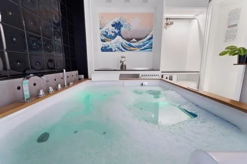 The hot tub is a top feature of this suite. This suite includes 1 living room, 1 separate bedroom and 1 bathroom with a bath and free toiletries. The fully equipped kitchen features a stovetop, a refrigerator, a dishwasher and kitchenware. The suite has tiled floors, a seating area with a flat-screen TV with streaming services, air conditioning, a tea and coffee maker, as well as a dining area. The unit has 1 bed.