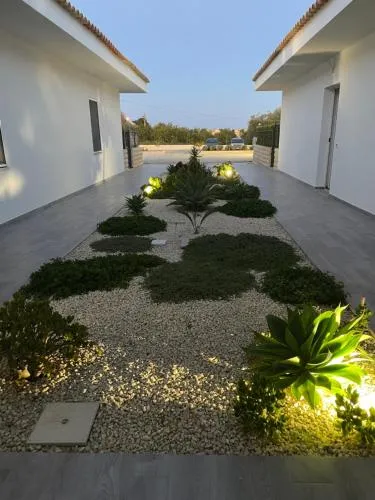 Featuring a private entrance, this air-conditioned holiday home is comprised of 1 living room, 2 separate bedrooms and 1 bathroom with a shower and a bidet. Guests can make meals in the kitchen that is fitted with a stovetop, a refrigerator, kitchenware and an oven. Boasting a terrace with garden views, this holiday home also offers a washing machine and a flat-screen TV. The unit offers 3 beds.