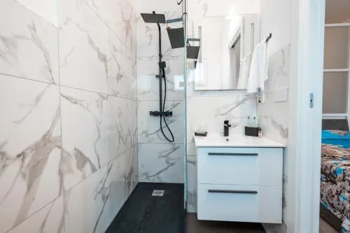The studio offers air conditioning, a washing machine, as well as a private bathroom boasting a walk-in shower and a hairdryer. The fully equipped kitchen has a stovetop, a refrigerator, kitchenware and an oven. The studio provides a private entrance, a tea and coffee maker, a dining area, a wardrobe and a flat-screen TV. The unit has 3 beds.