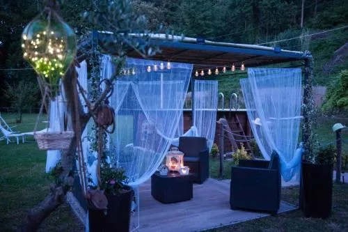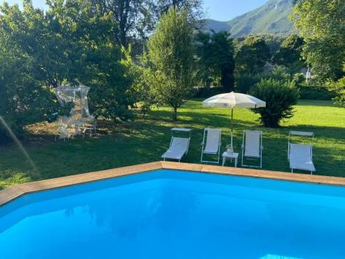 Bollitore tè/macchina caffè, Doccia, Vasca, TV, Asciugacapelli, Ferro da stiro, Balcone, Frigorifero, Ferro e asse da stiro, Zona soggiorno, WC, Forno a microonde, Lavastoviglie, Lavatrice, Patio, Bagno privato, Riscaldamento, Cucina, Vasca o doccia, Camino, TV a schermo piatto, Ingresso indipendente, Divano, Vista, Parquet o pavimento in legno, Zona pranzo, Bollitore elettrico, Utensili da cucina, Zanzariera, Piscina privata a uso esclusivo, Armadio o guardaroba, Forno, Piano cottura, Barbecue, Bidet, Vista giardino, Vista piscina, Vista montagna, Macchina da caffè, Vista fiume, Terrazza, Asciugamani, Biancheria per la casa, Tavolo da pranzo, Seggiolone, Arredamento da esterno, Zona pranzo all'aperto, Piani superiori accessibili solo tramite scale, Indipendente, Stand appendiabiti, Stendibiancheria, Carta igienica, Cancelletti di sicurezza per bambini, Campanello di emergenza nel bagno, Pattumiere, Lettini e culle per bambini, Presa elettrica vicino al letto, Adattatore, Cuscino non di piume, Vista cortile interno, Vista su strada tranquilla, Allarme antifumo, Estintori, Rilevatore di monossido di carbonio