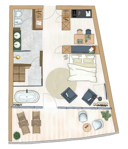 Guests will have a special experience as the suite offers a sauna. This spacious suite consists of 1 living room, 1 separate bedroom and 1 bathroom with a walk-in shower and free toiletries. In the well-equipped kitchenette, guests will find a stovetop, a refrigerator, kitchenware and a microwave. Featuring a balcony with mountain views, this suite also provides a seating area and a flat-screen TV with streaming services. The unit offers 2 beds.
