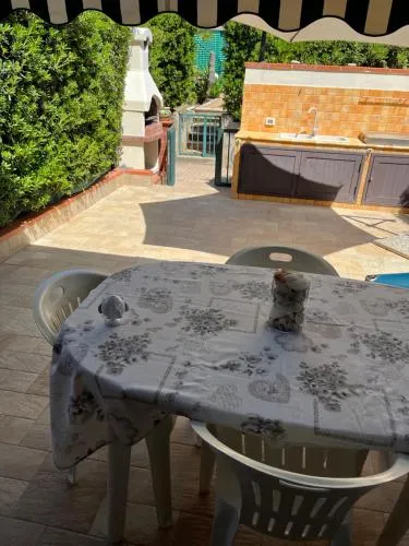 Bollitore tè/macchina caffè, Doccia, Cassaforte, TV, Aria condizionata, Asciugacapelli, Ferro da stiro, Angolo cottura, Accappatoio, Frigorifero, Ferro e asse da stiro, Zona soggiorno, Prodotti da bagno in omaggio, Ventilatore, WC, Forno a microonde, Lavastoviglie, Lavatrice, Patio, Bagno privato, Riscaldamento, Canali satellitari, Cucina, Vasca o doccia, Servizi igienici aggiuntivi, Disponibilità di camere comunicanti, TV a schermo piatto, Ingresso indipendente, Divano, Pavimento in marmo o in piastrelle, Vista, Sveglia, Zona pranzo, Bollitore elettrico, Utensili da cucina, Zanzariera, Armadio o guardaroba, Forno, Piano cottura, Tostapane, Barbecue, Bidet, Macchina da caffè, Terrazza, Asciugamani, Biancheria per la casa, Tavolo da pranzo, Seggiolone, Arredamento da esterno, Zona pranzo all'aperto, Intera unità situata al piano terra, Indipendente, Appartamento privato in edificio, Stand appendiabiti, Letto pieghevole, Stendibiancheria, Carta igienica, Copriprese di sicurezza per bambini, Cancelletti di sicurezza per bambini, Divano letto, Piscina a sfioro, Piscina con vista, Teli, Zona acqua bassa, Bottiglia d'acqua, Cioccolatini o biscotti, Pattumiere, Calici da vino, Lettini e culle per bambini, Shampoo, Balsamo, Bagnoschiuma, Presa elettrica vicino al letto, Adattatore, Cuscino ipoallergenico, Vista cortile interno, Vista su strada tranquilla, Servizio streaming (per es. Netflix), Armadietti, Allarme antifumo, Estintori, Accesso con chiavi, Rilevatore di monossido di carbonio