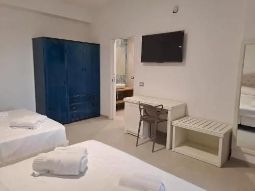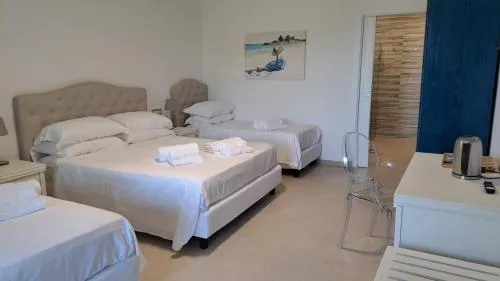 The kitchenette is equipped with a stovetop, a refrigerator and kitchenware. The triple room provides air conditioning, a tea and coffee maker, a terrace with sea views as well as a private bathroom featuring a walk-in shower. The unit offers 2 beds.
