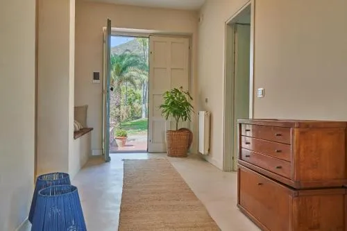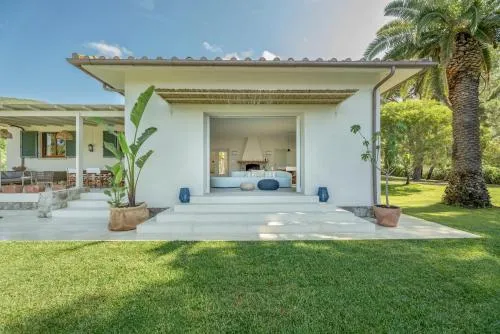 La piscina privata e il camino sono le caratteristiche speciali di questa villa. È climatizzata e dotata di un ingresso indipendente, 1 soggiorno, 5 camere da letto separate e 4 bagni con doccia e bidet. Include una cucina completamente attrezzata con fornello, frigorifero, lavastoviglie e utensili. È presente un barbecue. Questa spaziosa villa offre anche una TV a schermo piatto con servizi di streaming, una lavatrice, un set per la preparazione di tè e caffè, un area salotto e la vista sul mare. L alloggio dispone di 9 letti.