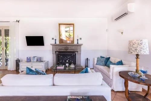Bollitore tè/macchina caffè, Doccia, Vasca, TV, Aria condizionata, Asciugacapelli, Ferro da stiro, Frigorifero, Scrivania, Ferro e asse da stiro, Zona soggiorno, Prodotti da bagno in omaggio, Lettore CD, Ventilatore, WC, Lavastoviglie, Lavatrice, Patio, Bagno privato, Riscaldamento, Canali satellitari, Cucina, Vasca o doccia, Camino, TV a schermo piatto, Ingresso indipendente, Divano, Pavimento in marmo o in piastrelle, Vista, Zona pranzo, Bollitore elettrico, Utensili da cucina, Piscina privata a uso esclusivo, Armadio o guardaroba, Forno, Piano cottura, Tostapane, Bidet, Vista giardino, Macchina da caffè, Asciugamani, Biancheria per la casa, Tavolo da pranzo, Seggiolone, Arredamento da esterno, Zona pranzo all'aperto, Intera unità situata al piano terra, Indipendente, Stendibiancheria, Carta igienica, Divano letto, Piscina con vista, Teli, Pattumiere, Calici da vino, Lettini e culle per bambini, Shampoo, Bagnoschiuma, Presa elettrica vicino al letto, Cuscino non di piume, Servizio streaming (per es. Netflix), Estintori, Accesso con chiavi