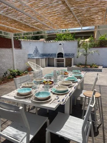 Bollitore tè/macchina caffè, Doccia, TV, Aria condizionata, Asciugacapelli, Ferro da stiro, Frigorifero, Ferro e asse da stiro, Zona soggiorno, WC, Lavastoviglie, Lavatrice, Patio, Bagno privato, Riscaldamento, Cucina, Canali via cavo, Vasca o doccia, Servizi igienici aggiuntivi, TV a schermo piatto, Ingresso indipendente, Divano, Pavimento in marmo o in piastrelle, Vista, Zona pranzo, Bollitore elettrico, Utensili da cucina, Zanzariera, Armadio o guardaroba, Forno, Piano cottura, Barbecue, Bidet, Vista giardino, Macchina da caffè, Terrazza, Asciugamani, Biancheria per la casa, Tavolo da pranzo, Arredamento da esterno, Zona pranzo all'aperto, Intera unità situata al piano terra, Indipendente, Stendibiancheria, Carta igienica, Divano letto, Doccia a filo pavimento, Frutta, Pattumiere, Calici da vino, Lettini e culle per bambini, Presa elettrica vicino al letto, Cuscino non di piume, Vista cortile interno, Accesso con chiavi
