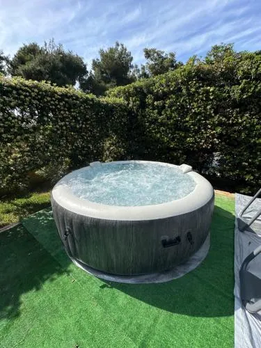 This holiday home boasts a private pool, hot tub and fireplace. Featuring a private entrance, this air-conditioned holiday home consists of 1 living room, 1 separate bedroom and 2 bathrooms with a bath and a shower. Guests will find a refrigerator, a dishwasher, kitchenware and an oven in the well-equipped kitchen. The holiday home also offers a barbecue. The spacious holiday home provides a washing machine, a coffee machine, a seating area, a flat-screen TV, as well as garden views. The unit offers 9 beds.