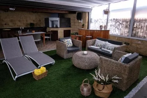 Doccia, TV, Aria condizionata, Asciugacapelli, Vasca idromassaggio, Ferro da stiro, Angolo cottura, Accappatoio, Radio, Frigorifero, Scrivania, Ferro e asse da stiro, Zona soggiorno, Prodotti da bagno in omaggio, WC, Lavastoviglie, Lavatrice, Patio, Bagno privato, Riscaldamento, Cucina, Vasca o doccia, TV a schermo piatto, Ingresso indipendente, Divano, Pavimento in marmo o in piastrelle, Sveglia telefonica, Zona pranzo, Bollitore elettrico, Utensili da cucina, Zanzariera, Armadio o guardaroba, Forno, Piano cottura, Tostapane, Barbecue, Bidet, Vista giardino, Prodotti per le pulizie, Macchina da caffè, Terrazza, Asciugamani, Biancheria per la casa, Tavolo da pranzo, Seggiolone, Arredamento da esterno, Zona pranzo all'aperto, Intera unità situata al piano terra, Semi-indipendente, Appartamento privato in edificio, Stand appendiabiti, Stendibiancheria, Carta igienica, Cancelletti di sicurezza per bambini, Divano letto, Piscina riscaldata, Vasca immersione ad acqua fredda, Teli, Copertura per piscina, Bottiglia d'acqua, Cioccolatini o biscotti, Pattumiere, Calici da vino, Lettini e culle per bambini, Shampoo, Bagnoschiuma, Presa elettrica vicino al letto, Cuscino di piume, Vista cortile interno, Estintori, Accesso con chiavi, Purificatori d'aria, Aria condizionata indipendente in ogni alloggio, Gel igienizzante per le mani