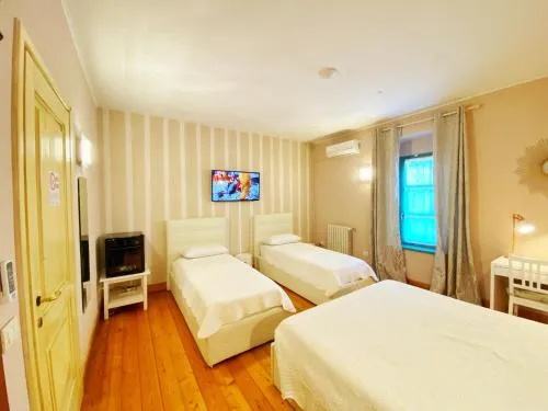 | Bambini con letti supplementari | Sono ammessi bambini di tutte le età. I bambini fino a 2 anni inclusi possono soggiornare gratis in una culla (se disponibile). I bambini fino a 0 anni inclusi possono soggiornare al costo di € 35 a persona a notte in uno dei letti già presenti. I bambini di età da 1 anno - fino a 5 anni possono soggiornare al costo di € 40 a persona a notte in uno dei letti già presenti. Non hai aggiunto letti supplementari. Qualsiasi tipo di letto supplementare o culla è disponibile su richiesta e previa conferma da parte della struttura. I supplementi non sono inclusi nell’importo totale e devono essere pagati separatamente durante il soggiorno. |