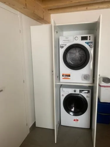 Bollitore tè/macchina caffè, Doccia, TV, Aria condizionata, Asciugacapelli, Ferro da stiro, Stirapantaloni, Frigorifero, Ferro e asse da stiro, Prodotti da bagno in omaggio, Ventilatore, WC, Forno a microonde, Lavatrice, Bagno privato, Riscaldamento, Cucina, Canali via cavo, TV a schermo piatto, Ingresso indipendente, Divano, Parquet o pavimento in legno, Zona pranzo, Bollitore elettrico, Utensili da cucina, Zanzariera, Asciugatrice, Armadio o guardaroba, Forno, Piano cottura, Bidet, Prodotti per le pulizie, Macchina da caffè, Asciugamani, Biancheria per la casa, Tavolo da pranzo, Seggiolone, Intera unità situata al piano terra, Piani superiori accessibili solo tramite scale, Semi-indipendente, Stand appendiabiti, Stendibiancheria, Carta igienica, Divano letto, Teli, Bottiglia d'acqua, Pattumiere, Calici da vino, Lettini e culle per bambini, Shampoo, Bagnoschiuma, Presa elettrica vicino al letto, Cuscino ipoallergenico, Servizio streaming (per es. Netflix), Allarme antifumo, Estintori, Rilevatore di monossido di carbonio