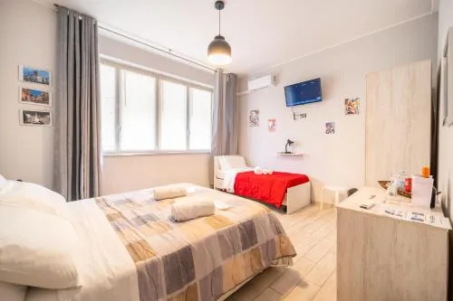 The triple room features air conditioning, a washing machine, as well as an external private bathroom boasting a shower and a bidet. In the fully equipped kitchen, guests will find a stovetop, a refrigerator, kitchenware and an oven. This triple room has a tea and coffee maker, flat-screen TV, city views, as well as chocolate for guests. The unit has 2 beds.