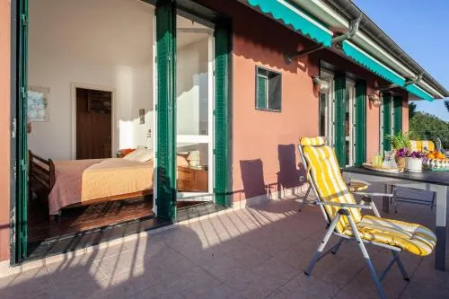 Bollitore tè/macchina caffè, Doccia, Vasca, TV, Aria condizionata, Asciugacapelli, Ferro da stiro, Balcone, Frigorifero, Scrivania, Ferro e asse da stiro, Zona soggiorno, WC, Bagno privato, Riscaldamento, Canali satellitari, Cucina, Vasca o doccia, TV a schermo piatto, Divano, Pavimento in marmo o in piastrelle, Vista, Zona pranzo, Asciugamani/lenzuola disponibili a pagamento, Armadio o guardaroba, Forno, Piano cottura, Bidet, Vista mare, Vista giardino, Prodotti per le pulizie, Macchina da caffè, Terrazza, Asciugamani, Biancheria per la casa, Tavolo da pranzo, Arredamento da esterno, Zona pranzo all'aperto, Intera unità situata al piano terra, Semi-indipendente, Stand appendiabiti, Carta igienica, Pattumiere, Calici da vino, Cuscino non di piume, Accesso con chiavi