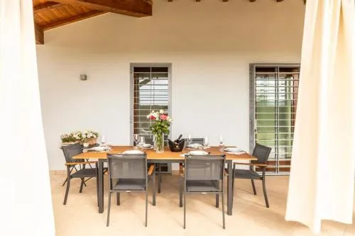 Featuring a private entrance, this air-conditioned villa is comprised of 1 living room, 3 separate bedrooms and 2 bathrooms with a shower and a bidet. Guests will find a stovetop, a refrigerator, a dishwasher and kitchenware in the kitchen. The villa also has a barbecue. This villa features a tea and coffee maker, a seating area, flat-screen TV, as well as wine/champagne for guests. The unit offers 5 beds.