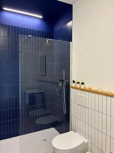 Featuring a private entrance, this air-conditioned holiday home consists of 1 living room, 2 separate bedrooms and 2 bathrooms with a shower and a bidet. In the well-equipped kitchen, guests will find a stovetop, a refrigerator, a dishwasher and kitchenware. This holiday home features a washing machine, a coffee machine, a flat-screen TV and an outdoor dining area. The unit offers 4 beds.