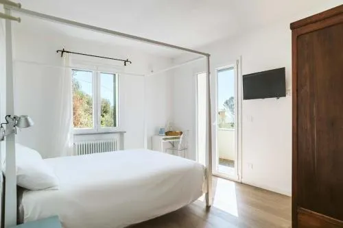 Camera matrimoniale dotata di aria condizionata, armadio, balcone con vista mare e bagno privato con doccia. L’alloggio presenta 1 letto.