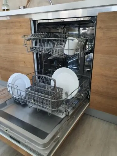 Featuring a private entrance, this air-conditioned holiday home consists of 1 living room, 2 separate bedrooms and 1 bathroom with a shower and a bidet. In the well-fitted kitchen, guests will find a stovetop, a refrigerator, a dishwasher and kitchenware. Boasting a terrace with garden views, this holiday home also provides a washing machine and a flat-screen TV with satellite channels. The unit offers 4 beds.